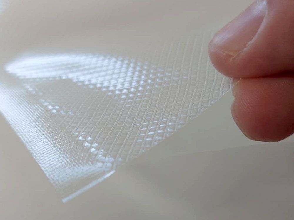 A légcsatornás vákuumtasakok belső felületén található speciális, dombornyomott csatornák biztosítják a levegő hatékony és maradéktalan elszívását a tasakból, még nedves élelmiszerek esetén is.